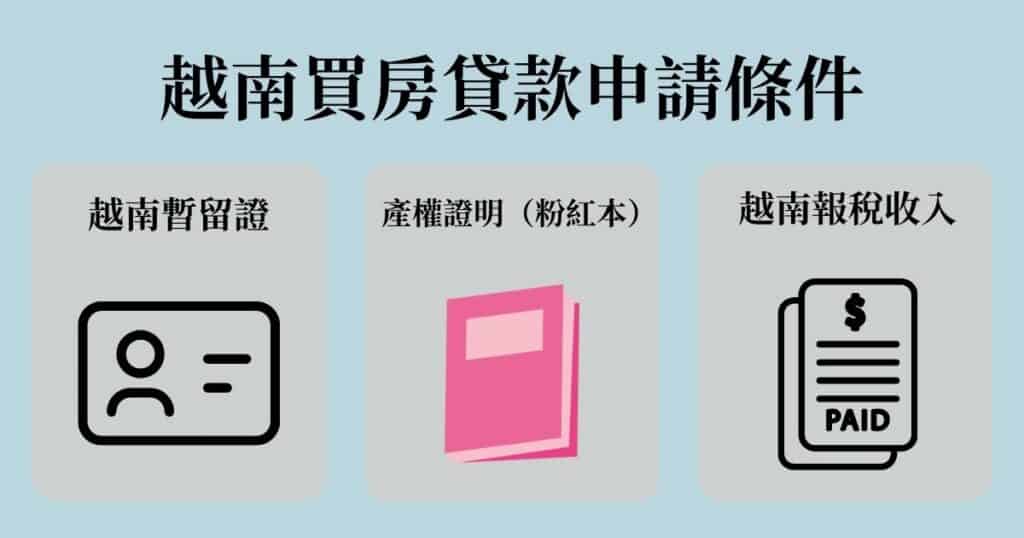 - 需擁有越南暫留證、報稅收入及產權證明(粉紅本)。