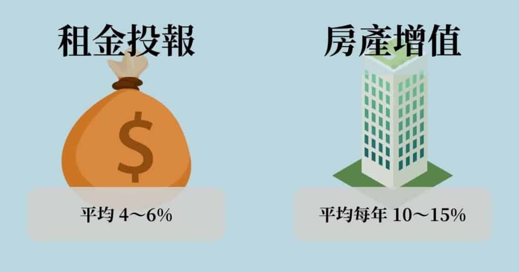 - 再加上房產增值的 10%~15%,實際的資產回報更可觀。