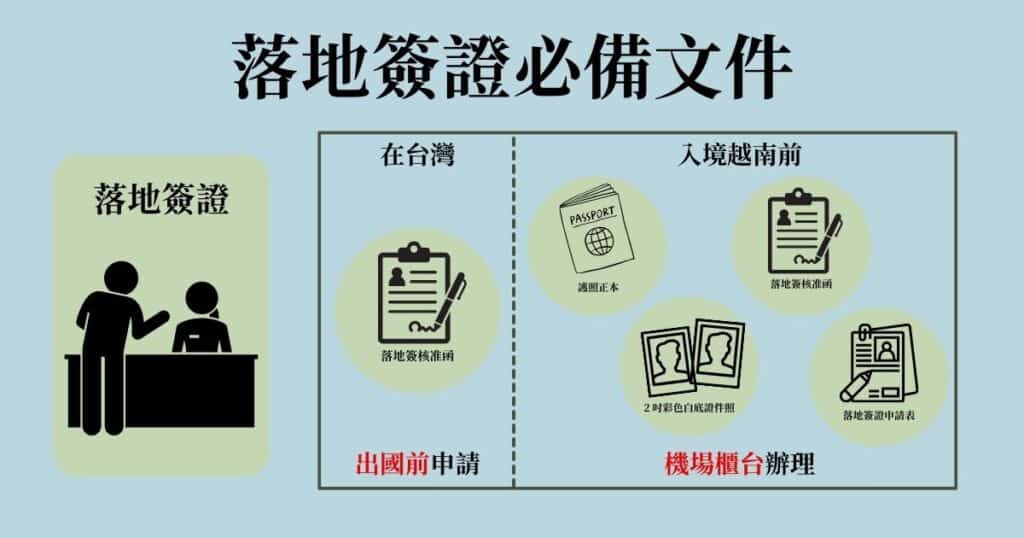 並在飛抵越南降落後,將這些文件交至越南國際機場的櫃檯,才能換得正式的簽證。