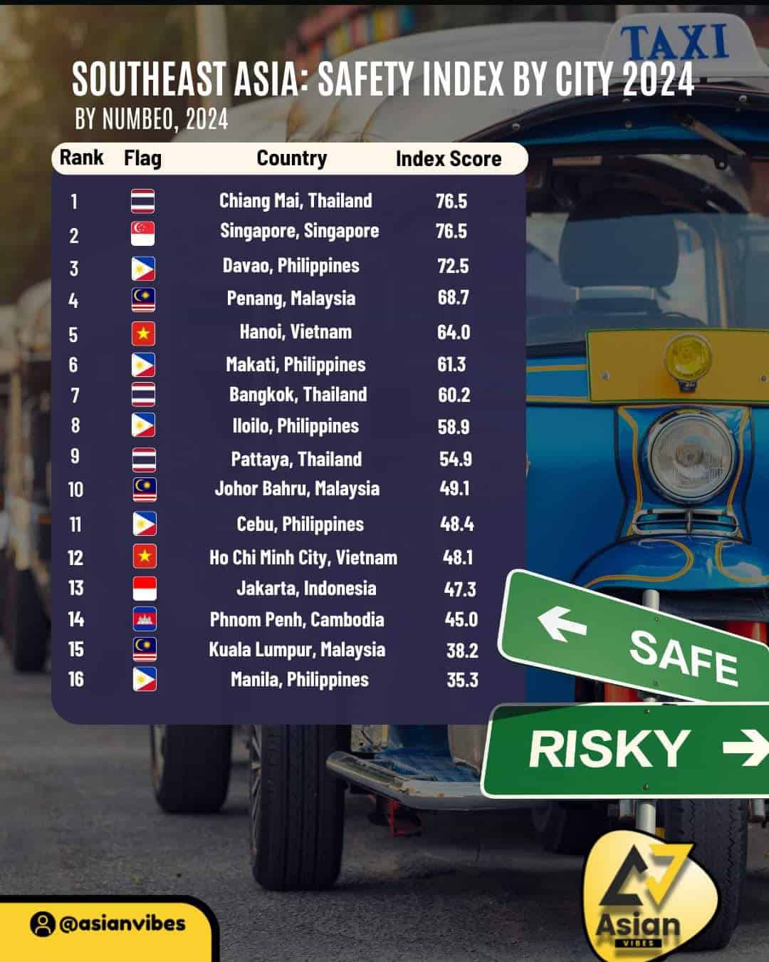 - 人身安全:越南河內、胡志明市,在東南亞國家的治安評分都是排名靠前的地區。